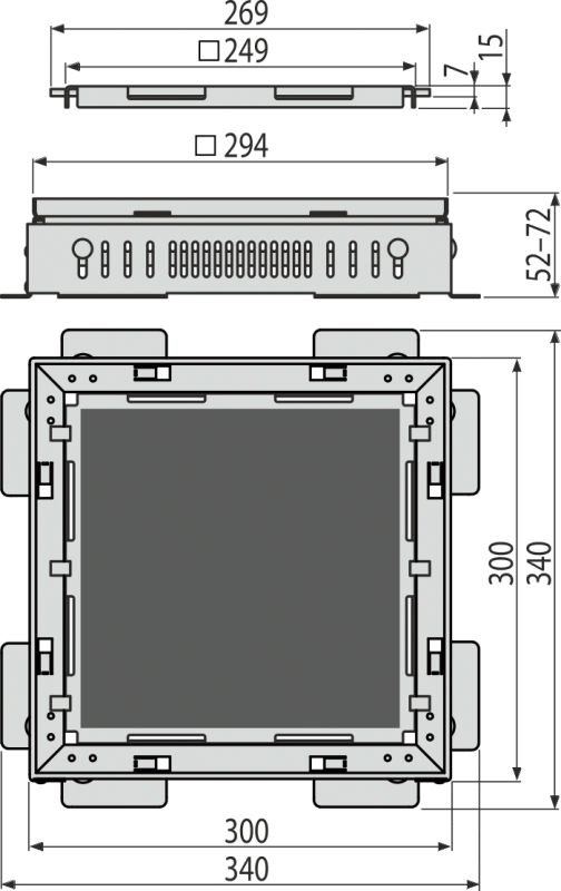 Trapa kakls + Dušas kanāla reste flīzēm 300×300, regulējams, cinkots tērauds