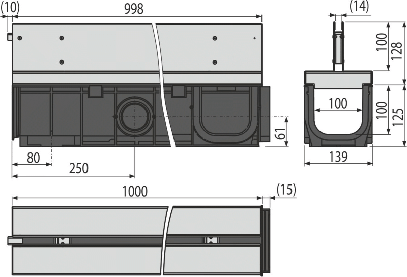 Drenāžas kanāls ar simetrisku spraugveida sistēmu 100 mm no cinkotā tērauda