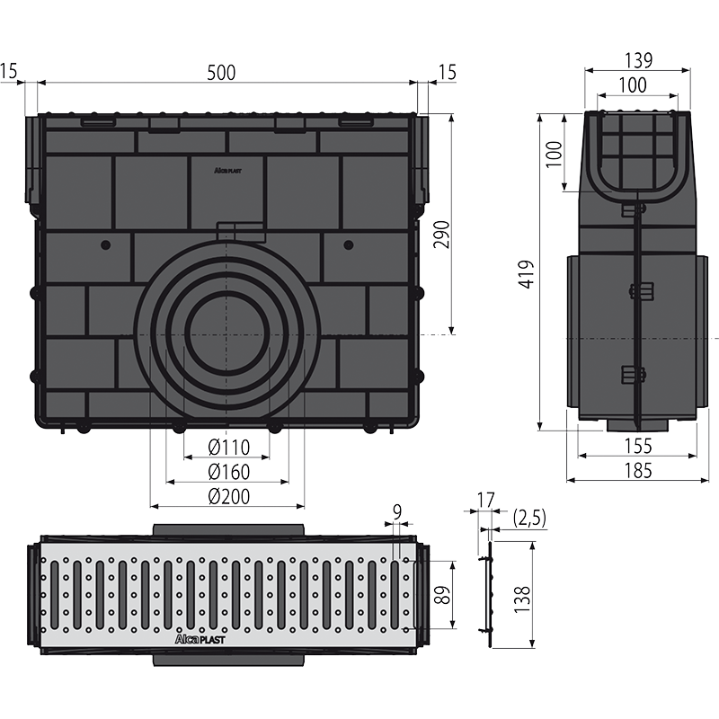 - Kanāla materiāls: ar talku bagātināts polipropilēns, izturīgs pret mehāniskiem, ķīmiskiem un termiskiem bojājumiem
