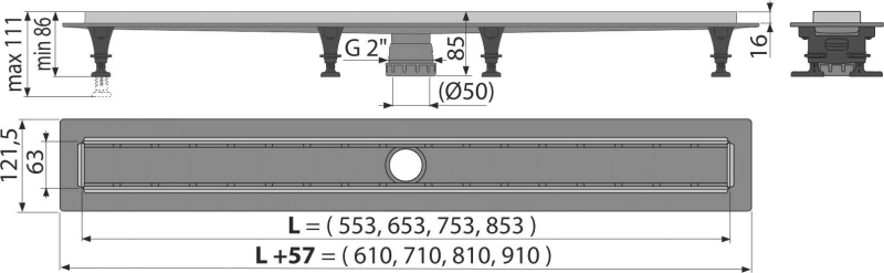 • Regulējamas montāžas kājas 0–27 mm, ļauj ātri un ērti uzstādīt dušas kanālu un izlīdzināt to horizontāli