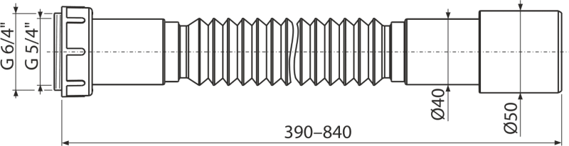 Elastīgs savienojums 6/4" ar pāreju 5/4"×50/40 ar plastmasas uzgriezni