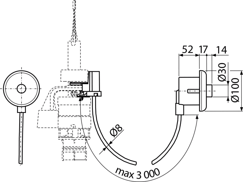 Maksimālais pneimatiskās vadības šļūtenes garums3 m