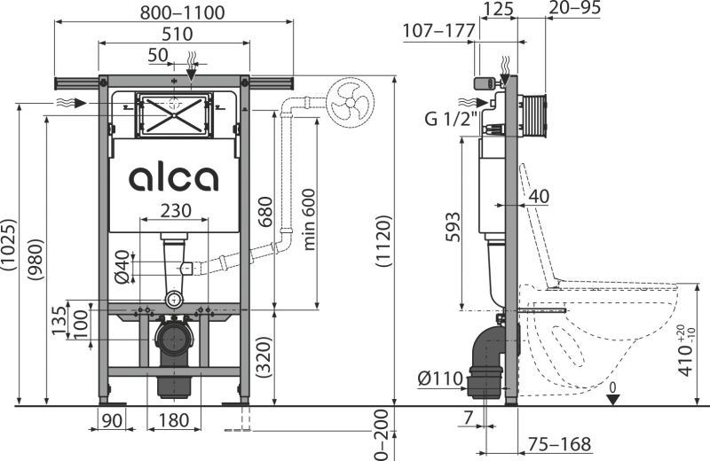 • Uzstādīts iebūvējamās skalojamās kastes rāmis ir pārklāts ar ģipškartona loksni, un tam nav nepieciešami papildu stiprinājumi