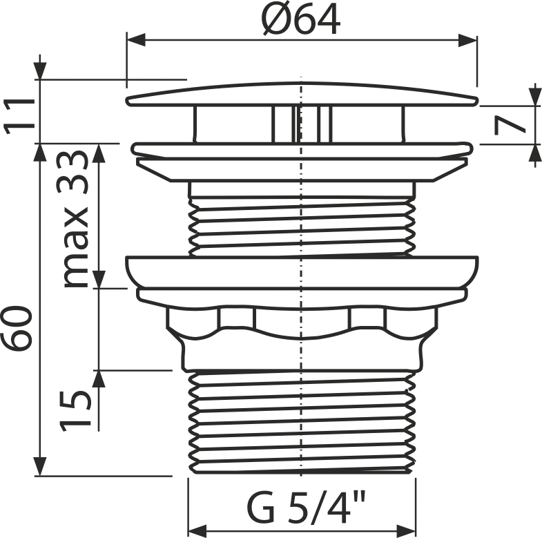 Sifona izplūde izlietnei bez pārplūdes 5/4", misiņa, hromēts, liels korķis