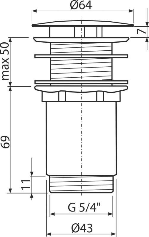 Sifona izplūde izlietnei bez pārplūdes 5/4", misiņa, hromēts, liels korķis, balts-spīdīgs