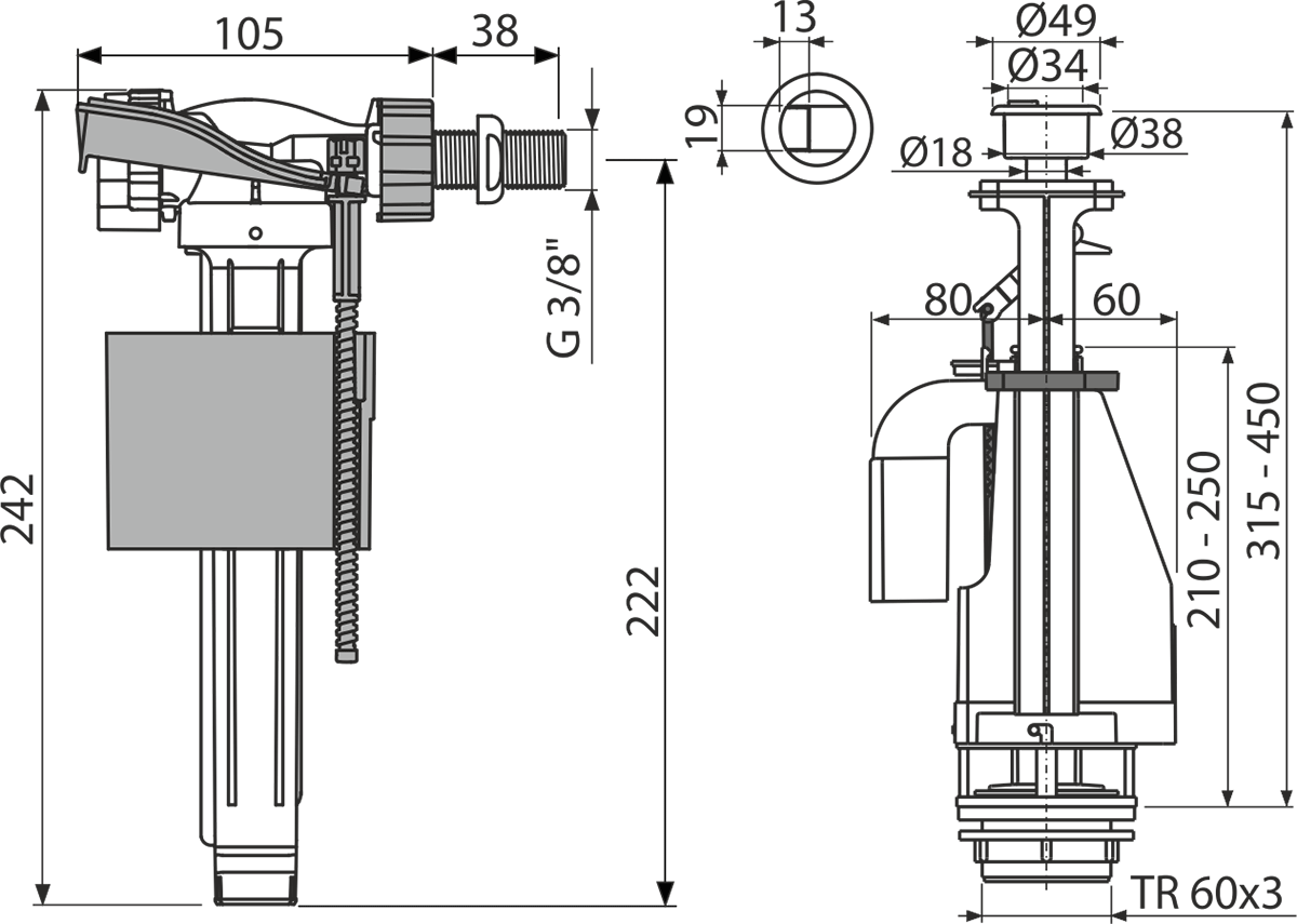 - Konstrukcija ļauj pielāgot mehānisma augstumu atkarībā no tvertnes augstuma