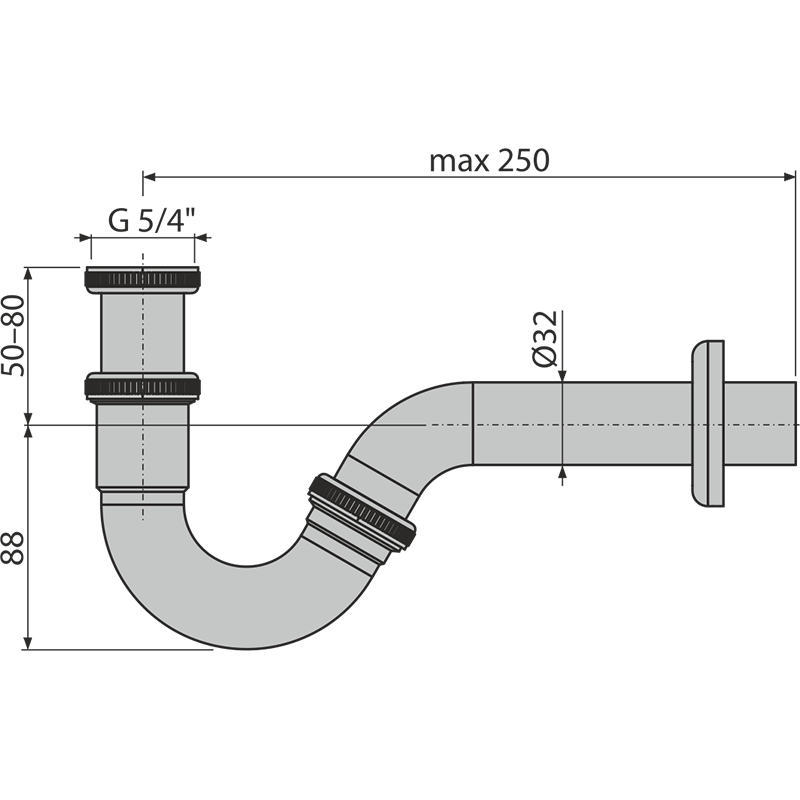- Pieslēgums pie kanalizācijas caurules Ø32 mm