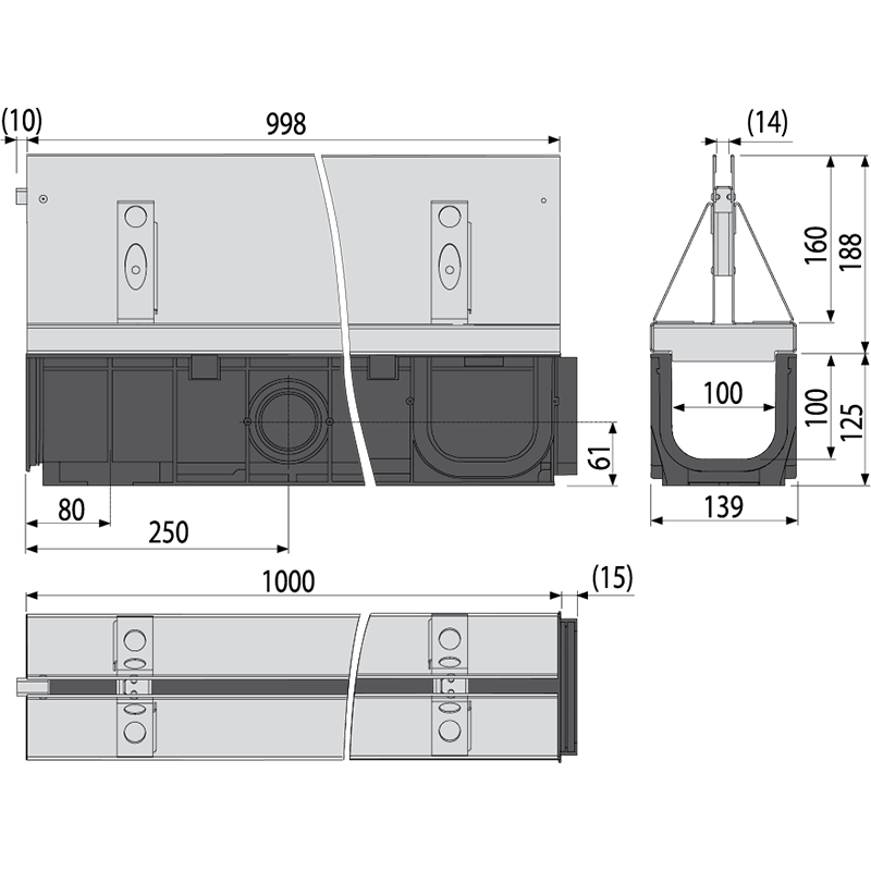 Drenāžas kanāls ar simetrisku spraugveida sistēmu 160 mm no cinkotā tērauda