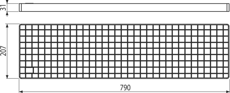 Kārbveida kanāla režģis 1 m, no nerūsējošā tērauda AISI 316L