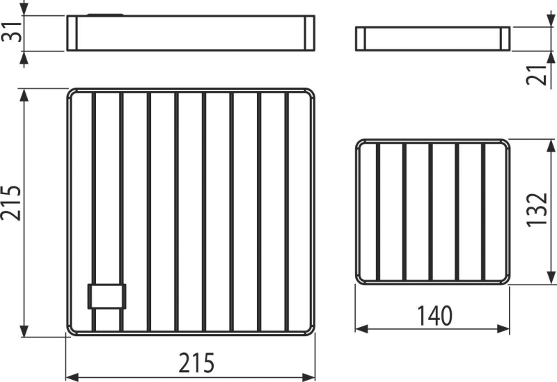 | Izmēri (gab.) | 215×215×52 mm |