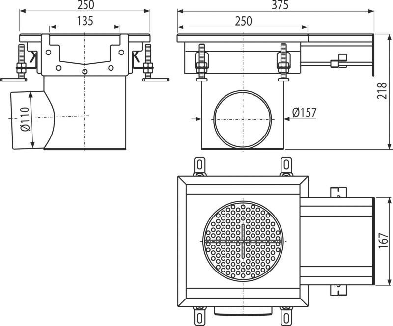 Rūpnieciskais traps 250×250-135 no nerūsējošā tērauda AISI 316L, ar kārbveida izvadu