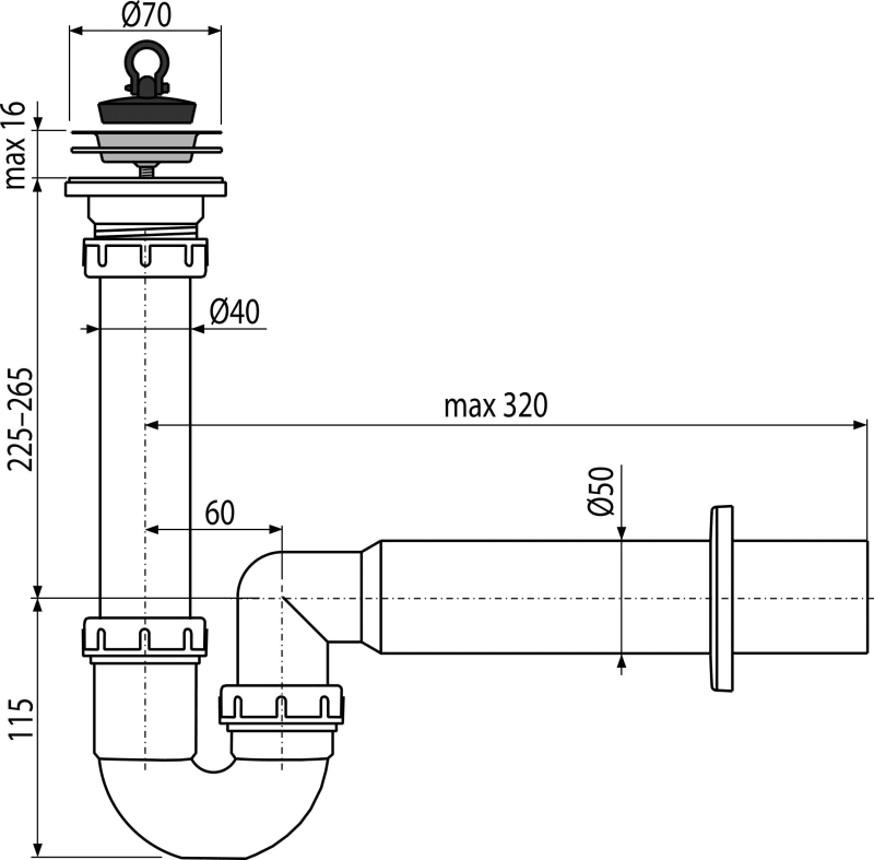 - Pieslēgums pie kanalizācijas caurules ar Ø50 mm cauruli