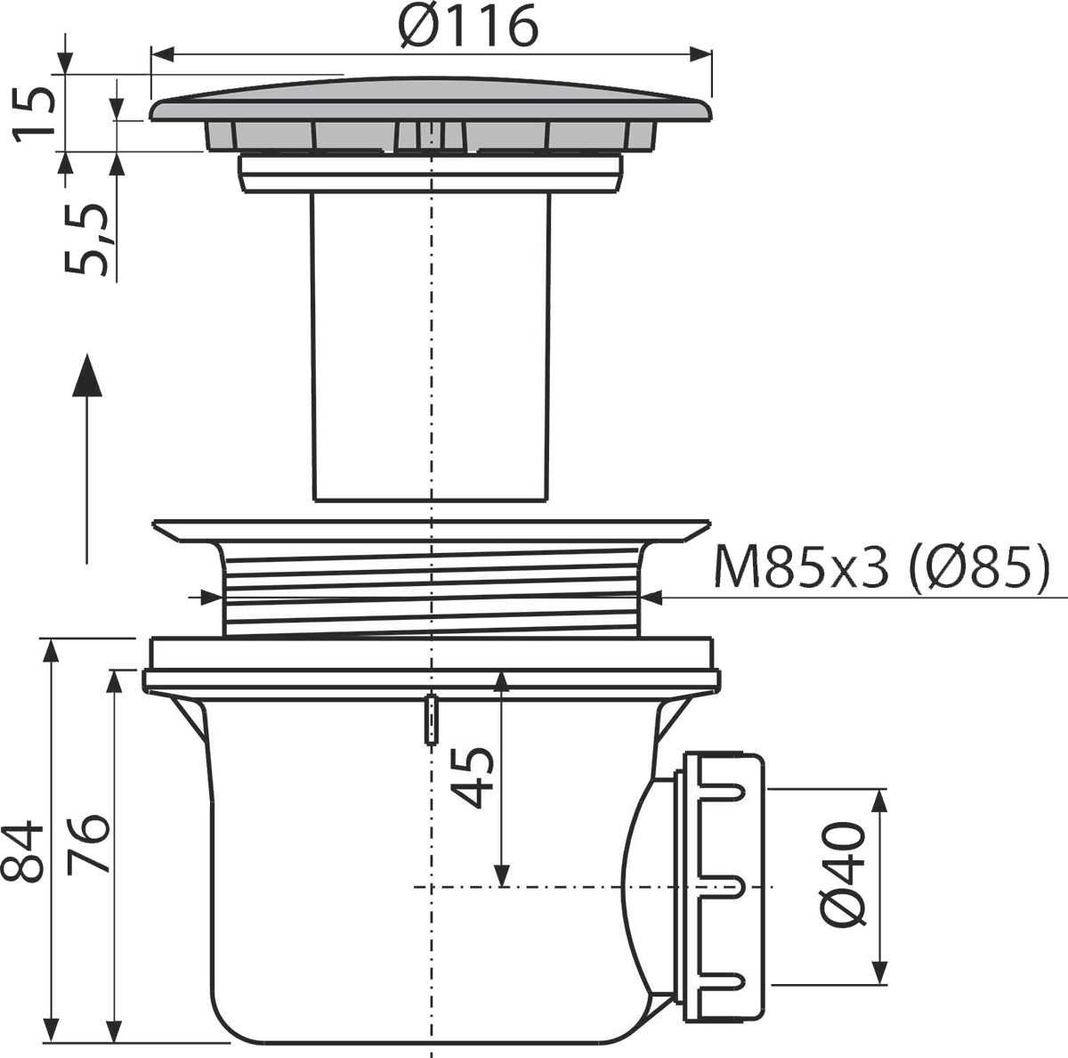 - Dušas paliktņiem ar izplūdes caurumu Ø90 mm