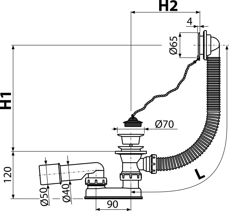 - Sifona hidroaizvars no polipropilēna, metināts ar ultraskaņu, izturīgs pret termiskām un ķīmiskām ietekmēm